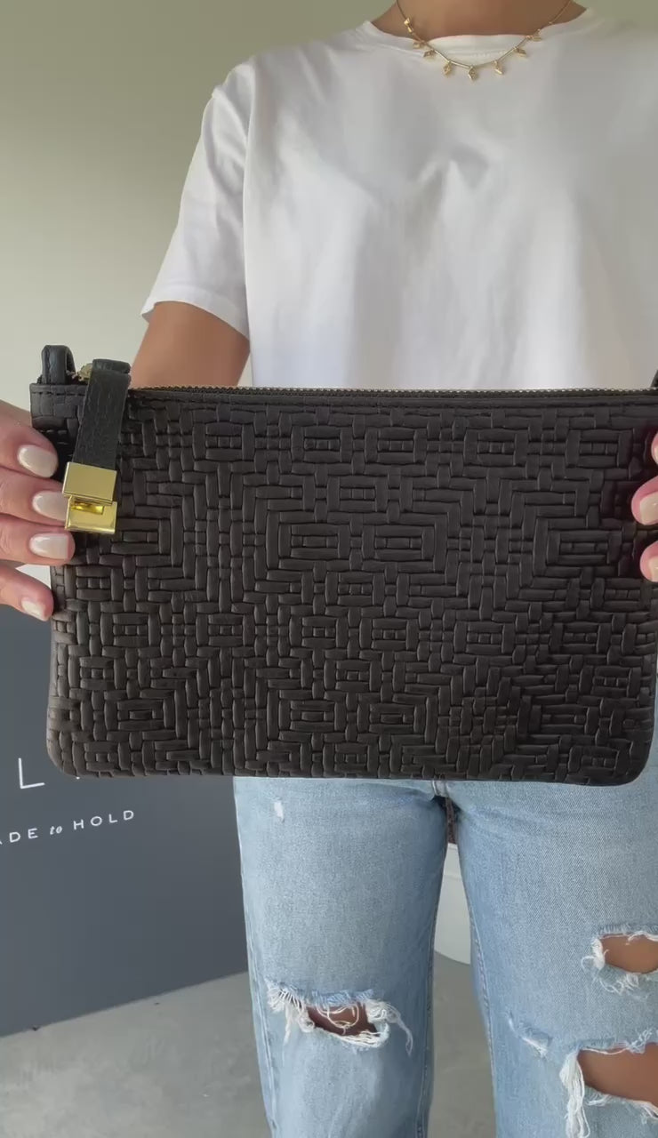 Discover the TIP Pouch with Loops and feel the freedom of going anywhere in style! With its chic black pebbled leather, mini clutch design, and convertible loops for adding a strap, it’s the perfect accessory for a night out or a stroll in the park. Compact and chic - who could ask for anything more?