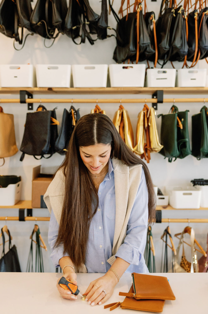 Now in it's fifteenth season, K.Slade's success has intensified Kelsea's love of American-made products and strengthened her partnerships with local artisans. Continuing to personally and intentionally design every piece in her small Indiana studio, the K.Slade collection always reflects her vision, her elegant styling, and her love for her craft. She trusts fair-paid, talented leather artisans in Chicago, Illinois to skillfully craft every piece using the highest-quality hides, cloth and hardware available. Fueled by design and product integrity, the results are spirited and long-lasting lifestyle goods that are truly made to hold.